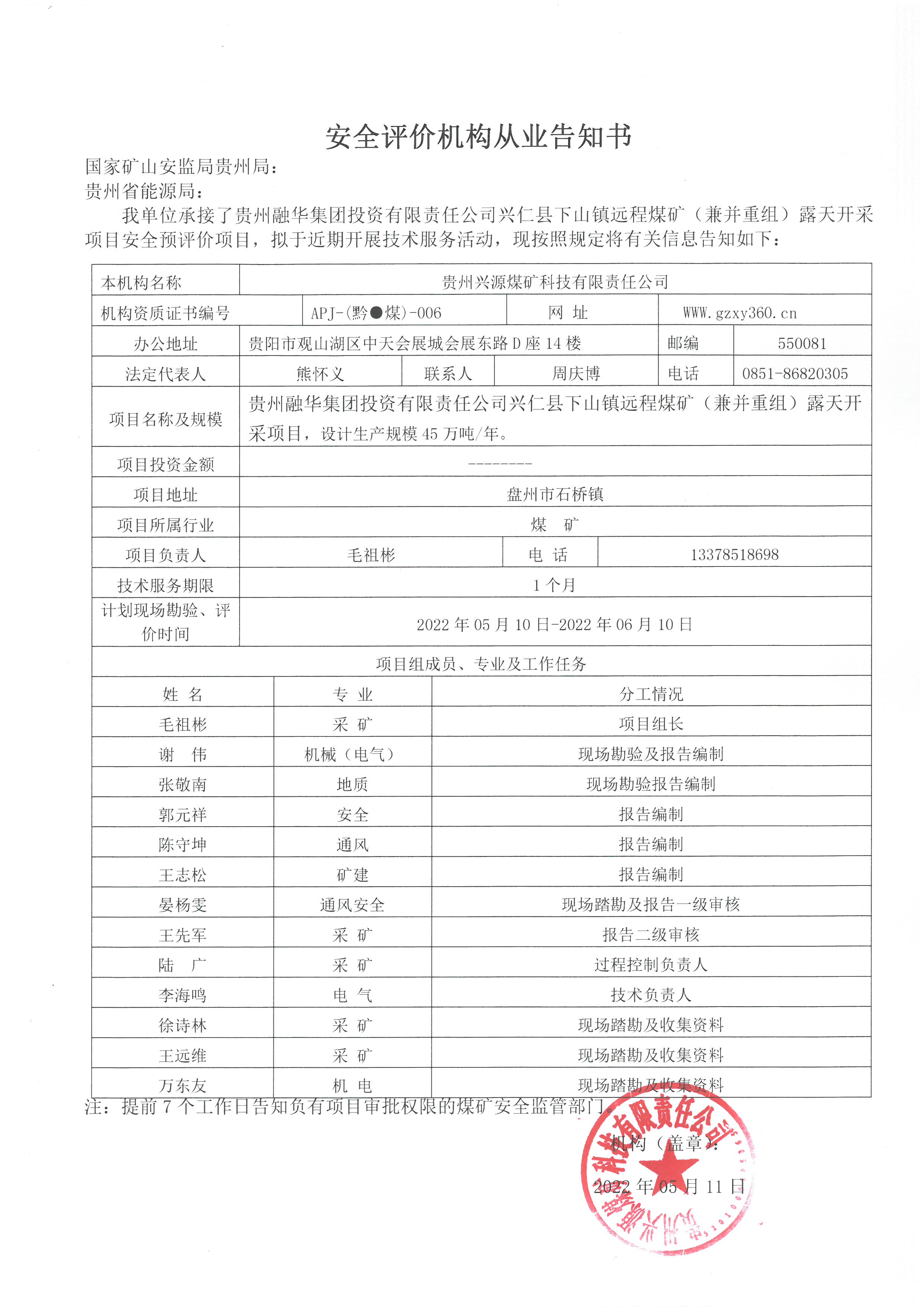 Notice of publicity
