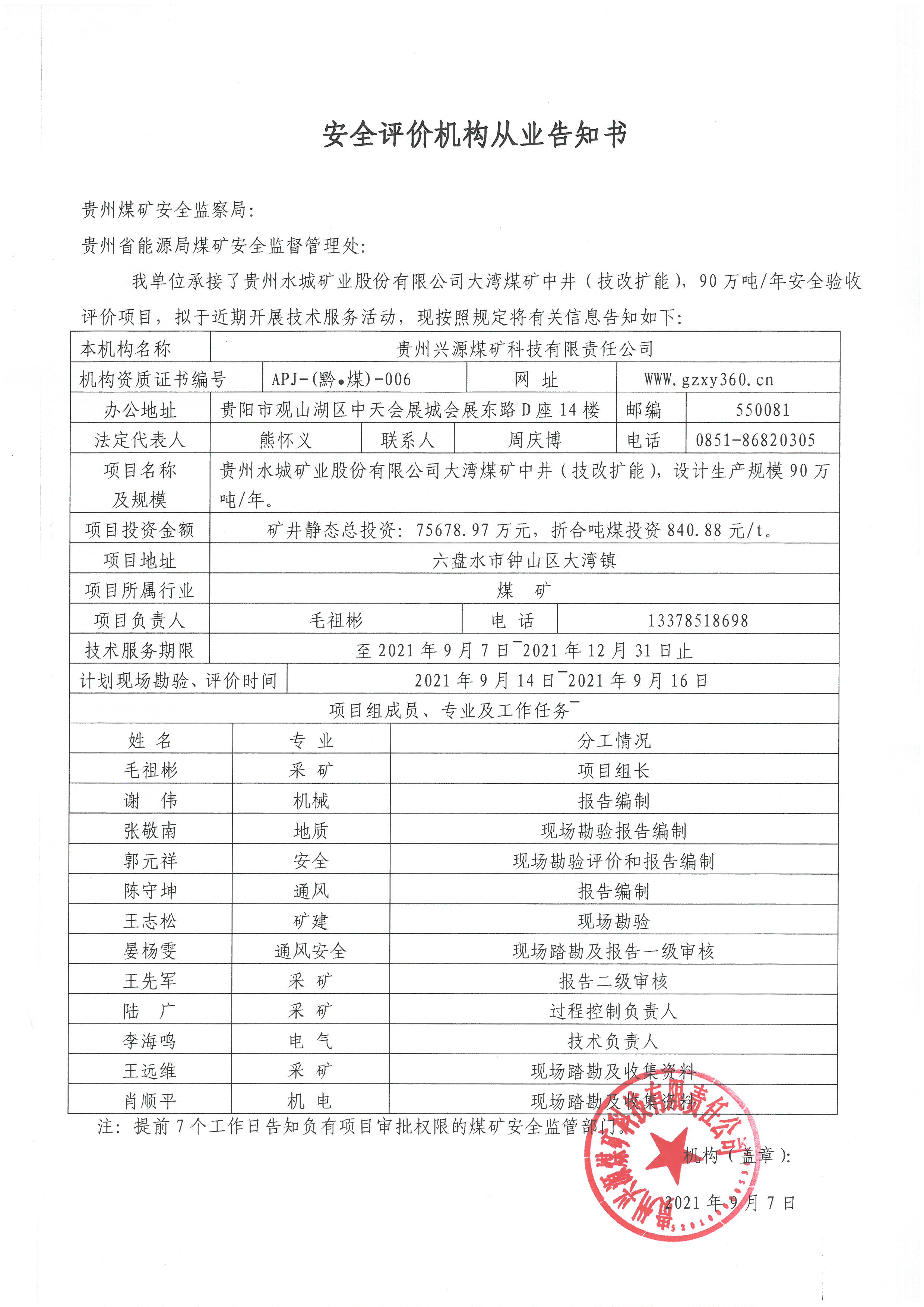 Notice of publicity