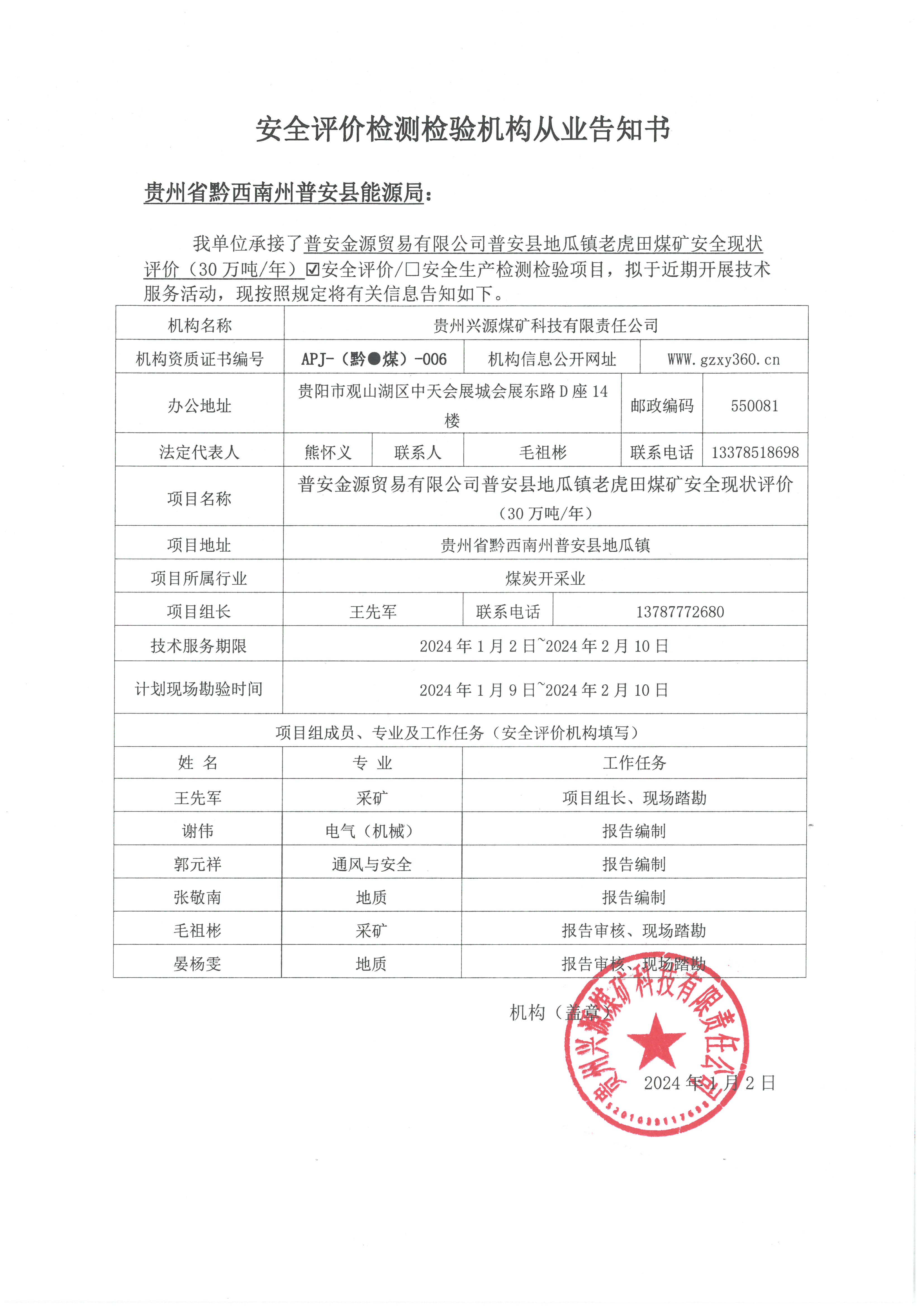 Notice of publicity